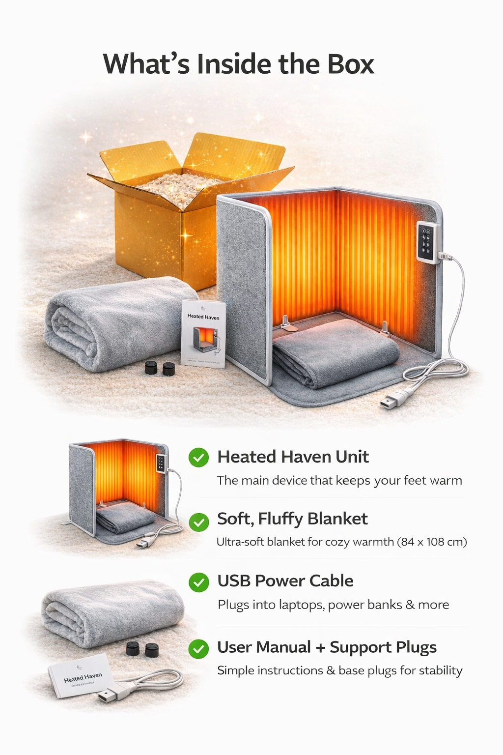 I’m someone whose feet are always freezing, especially when I’m reading or working from home. Heated Haven has been a lifesaver. It heats up fast and feels like my feet are wrapped in a warm hug. I honestly don’t use my desk without it anymore.